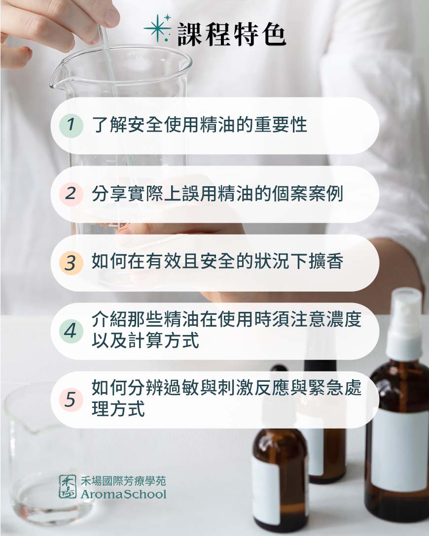 課程總時長為5小時。在本課程中,您將了解精油如何在體內發揮作用,識別某些特性(有益或其他)的成分,評估風險與益處,計算適當的比例等等。講師個人介紹 邱琦Chi 年輕時因為嚴重的皮膚問題而一口氣栽進芳療的世界,在英國求學與工作中大量吸收了歐美芳療知識,回台後在禾場國際芳療學苑取得NAHA Level 2專業芳療師證照,目前在禾場芳療學苑任職講師。擅長純露皮膚保養和痘痘肌膚的處理。身為兩個孩子的媽媽,也對幼兒護理與精油的安全性特別重視,希望能用正確安全的觀念使用精油,讓芳療豐富每一個人的人生。